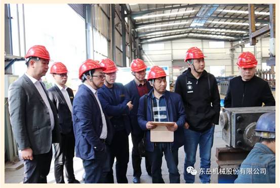 參觀后,公司副總裁鄧奎先生對東岳機械目前發展狀況、市場情況進行了詳細介紹,技術研發中心分別從工藝規劃布局、機械設計、電氣控制方面做出了詳細匯報。湖南飛山奇集團李林輝董事長、長樂建材陳時勇總經理肯定了東岳機械近年高速發展的成果,希望雙方在未來有更加深入的合作!