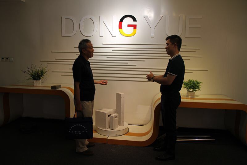 在營銷總經理鄧奎的陪同下,許會長一行參觀了東岳機械氣混凝土生產線,東岳機械自2004年涉足加氣裝配生產以來,現已形成批量生產“加氣混凝土砌塊/板材生產線”成套設備。東岳機械的新型建材加工車間主要是生產加氣混凝土板材,同時為客戶提供專業的生產線實操培訓。