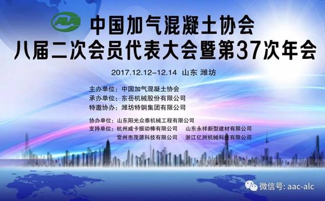 2017年是實施“十三五”規劃的重要一年,是供給側結構性改革的深化之年。為認真宣傳貫徹國家產業政策,由中國加氣混凝土協會主辦,東岳機械股份有限公司承辦的中國加氣混凝土協會第37次年會在山東濰坊隆重舉行。來自全國加氣行業的500多名領導、專家、學者、企業代表齊聚一堂,共商行業發展大計。