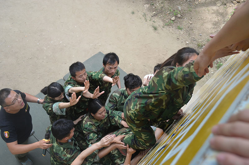 此次拓展主要是以提高員工的綜合素質(zhì)、團(tuán)隊(duì)意識(shí),促進(jìn)員工的成長(zhǎng)為目的。為了使拓展收到切實(shí)效果,讓每個(gè)參加活動(dòng)的員工都能在活動(dòng)中充分體驗(yàn)和感受活動(dòng)內(nèi)容凸顯出來(lái)的團(tuán)隊(duì)精神,在活動(dòng)開始時(shí),教練將員工分成了2個(gè)隊(duì),每個(gè)隊(duì)在隊(duì)長(zhǎng)、隊(duì)秘的帶領(lǐng)下確定了自己的隊(duì)名、口號(hào)、隊(duì)歌、隊(duì)旗等。在拓展過程中2個(gè)隊(duì)按照項(xiàng)目要求,堅(jiān)持不拋棄不放棄的團(tuán)隊(duì)精神,互幫互助,將每個(gè)人的智慧、力量融入到團(tuán)隊(duì)中,在大家的共同努力下出色的完成了信任背摔、空中斷橋、真人CS、茫茫人海、勝利墻等一項(xiàng)項(xiàng)艱巨而富有挑戰(zhàn)性的項(xiàng)目。